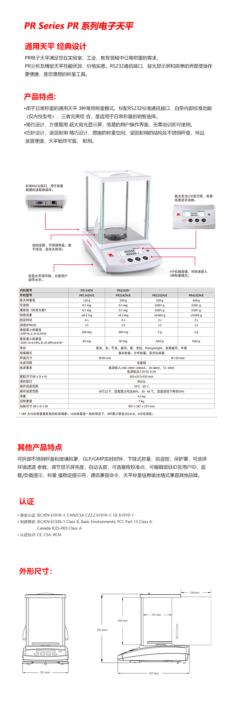 產(chǎn)品名稱:電子精密天平/PR223ZH/E